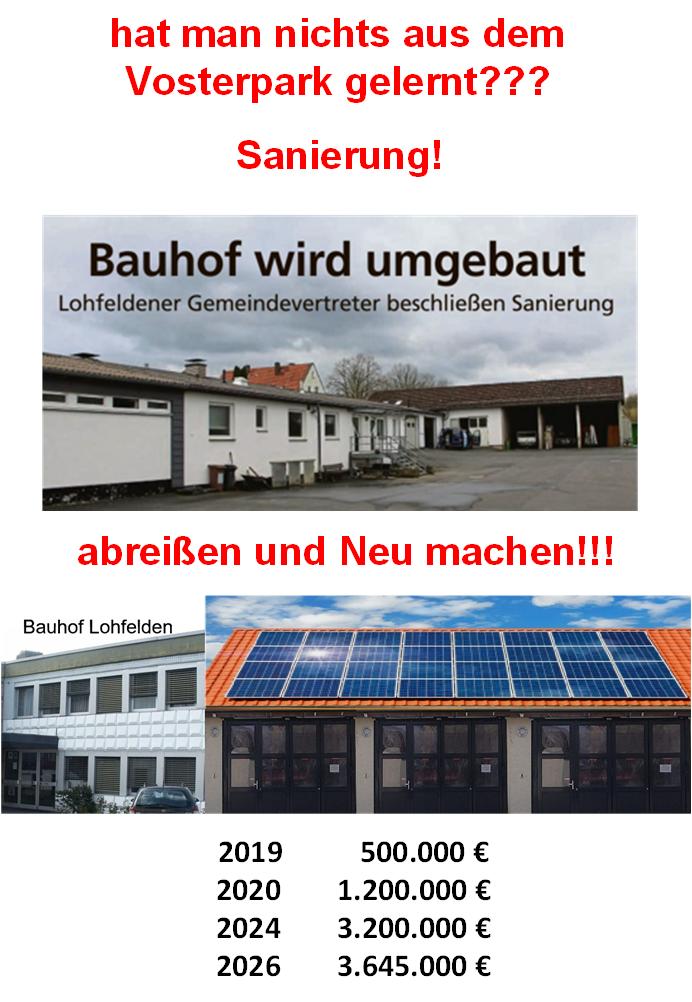 Der Ausfall der Söhresporthalle ist für Lohfelden schon seit über 3 Jahren ein immerwährendes Problem. Da wurde eine Bodensanierung durchgeführt, obwohl das Dach undicht war. Später wurde das Dach repariert, um dann festzustellen, dass die Halle immer noch feucht ist. Es wurden und werden Gutachten erstellt um dann Mitte des Jahres endlich festzustellen, ob renoviert oder abgerissen und neu gebaut werden muss. Diese Halle hat in den letzten Jahren unglaublich viel Geld gekostet und so geht es weiter. Die Sperrung bis mindestens 2029 kostet die Gemeinde nicht nur Geld sondern auch die Entwicklung der Sportvereine.